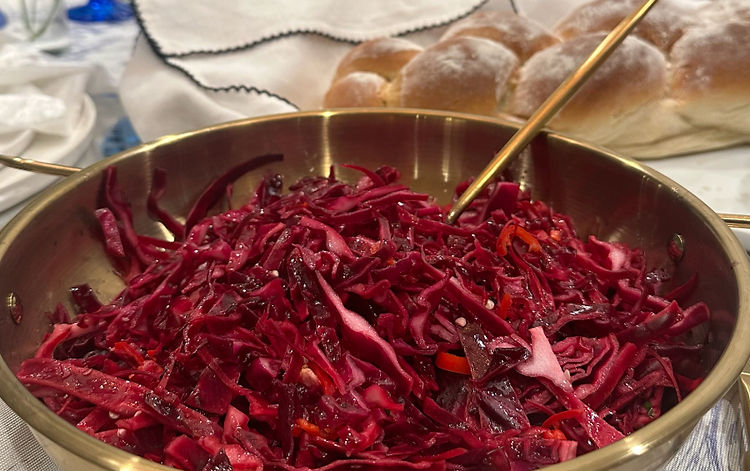 This is one of the easiest salads to make, and I can’t tell you how often people ask me for the recipe. With just 5-10 minutes of prep, you’ll have a crisp, tangy red cabbage salad that’s full of flavor and nutrients. It’s a perfect staple for Shabbat — or any meal.
